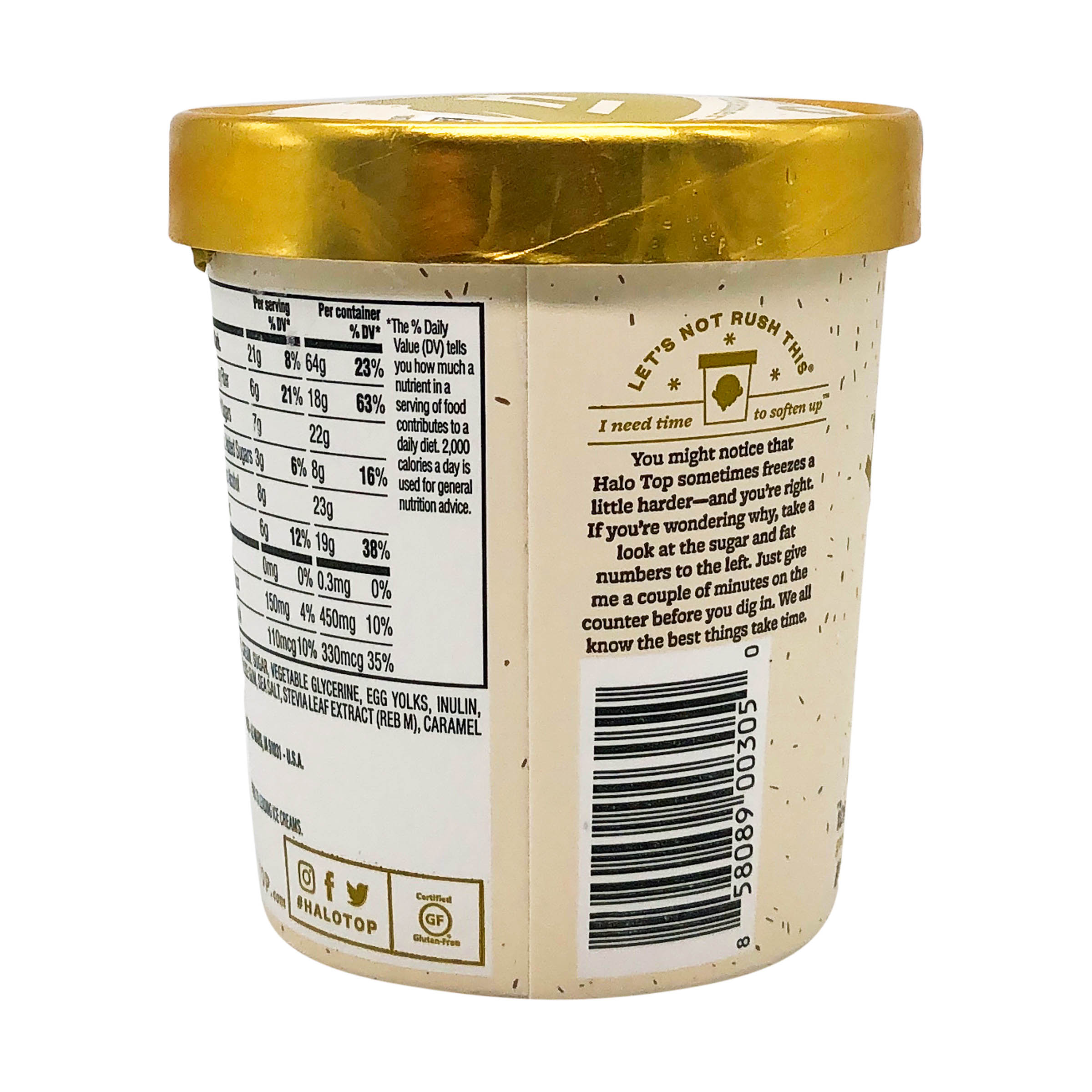 Halo top vanilla bean nutrition label. Halo Top Vanilla Bean Flavored Light Ice Cream Frozen Dessert For ... Ice Cream, Vanilla Bean Flavored, Light. Chocolate chip cookie dough. With natural and artificial flavors. 360 calories per pint. Good source of protein. Fat reduced 80% calories reduced 62% per serving compared to leading ice creams. Fat reduced 80%, from 18g to 3.5g and calories reduced 62%, from 320 to 120 per serving compared to leading ice ... Halo Top, Vanilla Bean Ice Cream, 16 oz - amazon.com We tried every vanilla we could get our hands on, but none of them had the perfect flavor we wanted. And remember, like any of our ice creams, our Vanilla Bean is low in calories and has almost twice the protein as sugar. Product details Product Dimensions : 5.6 x 4 x 7.8 inches; 1 Pounds Item model number : 655365 Halo Top Seasonal Vanilla Chocolate Twist Light Ice Cream Pint, 16 fl ... Nutrition facts. Refer to the product label for full dietary information, which may be available as an alternative product image. ... Halo Top Vanilla Chocolate Twist is made with vanilla and chocolate light ice creams swirled together; ... Halo Top LowCalorie Vanilla Bean Light Ice Cream Pint, 16 fl oz. Add. $4.98. current price $4.98. Vanilla Bean | HALO TOP® Introducing the Halo Top Keto Series: deliciously creamy pints and pops that pack fewer calories and less sugar than leading ice creams. At just 4g of net carbs per pint, you can savor the classic and warm taste of Vanilla Bean, without straying from your keto lifestyle. *per container Ratings & Reviews Nutrition Details FIND Vanilla Bean