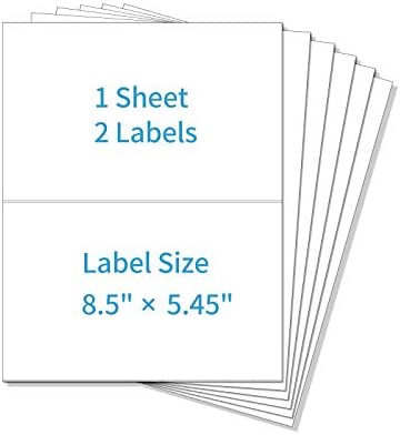 POLYSELLS Half Sheet Shipping Labels with Self Adhesive for Laser & Inkjet Printers, 2 Printing Labels Per Sheet, White 8.5 x 5.5 Inches - 100 Sheets ...