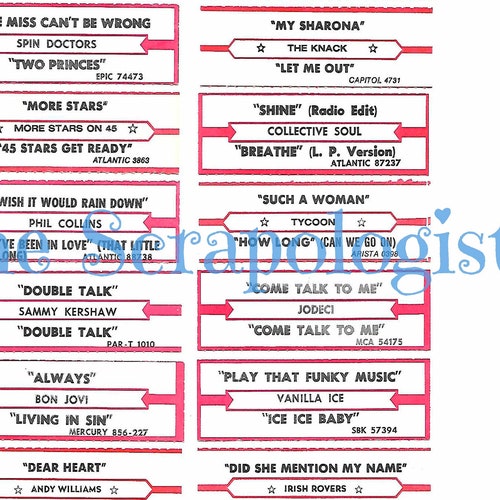 Groovey Tunes Music Memorbilia - Free Jukebox Label Maker Groovey Tunes Music Memorbilia - Free Jukebox Label Maker. Groovey Tunes Jukebox Label Maker. Click Here To Create A Label. Jukebox Title Strip Creator for 45rpm records Jukebox Title Strip Creator 45 & 33 1/3 rpm records Instructions: Enter information you want printed. If A side artist is the same as the B side artist, leave one blank. If you don't want publisher information printed, don't enter it. Click 'Create PDF' and the PDF will open in the window. You can then save the PDF or print it.