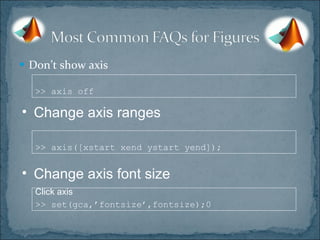 how can I increase font size in Matlab scripts - MathWorks In Matlab R2017a prerelease, I could only change the font size of characters displayed in the editor (i.e., my .m files). by going to Home/Preferences/Fonts/Custom/Editor. I dn't know what the actual R2017a release or subsequent releases require. Accepted Answer Image Analyst on 17 Dec 2015 6 Link Yes. Axis Font Size Matplotlib With Code Examples - folkstalk.com How do you change the font size on axis in Matlab? Accepted Answer To change the font size, set the "FontSize" property for the axes. Since many plotting functions reset axes properties, including the font size, set the "FontSize" property after plotting. For example, the code below sets the font size to 16 points. Changing Fonts Size in Matlab Plots - Stack Overflow If you want to change font size for all the text in a figure, you can use findall to find all text handles, after which it's easy: figureHandle = gcf; %# make all text in the figure to size 14 and bold set (findall (figureHandle,'type','text'),'fontSize',14,'fontWeight','bold') See answer by @sergeyf below for changing the axis label font as ... matlab - How to change font size of x axis? - Stack Overflow I always do it in the following way: plot (X) set (gca, 'FontName', 'Arial') set (gca, 'FontSize', 12) ylabel ('Label Y axis') xlabel ('Label X axis') In this way, the axis and the label will have the requested font and size. It is important to put 'xlabel' and 'ylabel' after the 'set'. The order in this case matters.