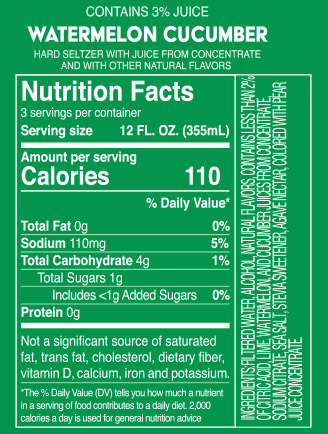 Everything You Need to Know About Hard Seltzer Labels | Sttark If your hard seltzer is made from sugar, you'll need to include nutrition facts and an ingredient list. You can include this information on malt-based hard seltzer labels as well, though it is not mandatory. The nutrition facts and ingredients list should appear on a side panel to the right of the front panel. 8. Manufacturer Name and Address