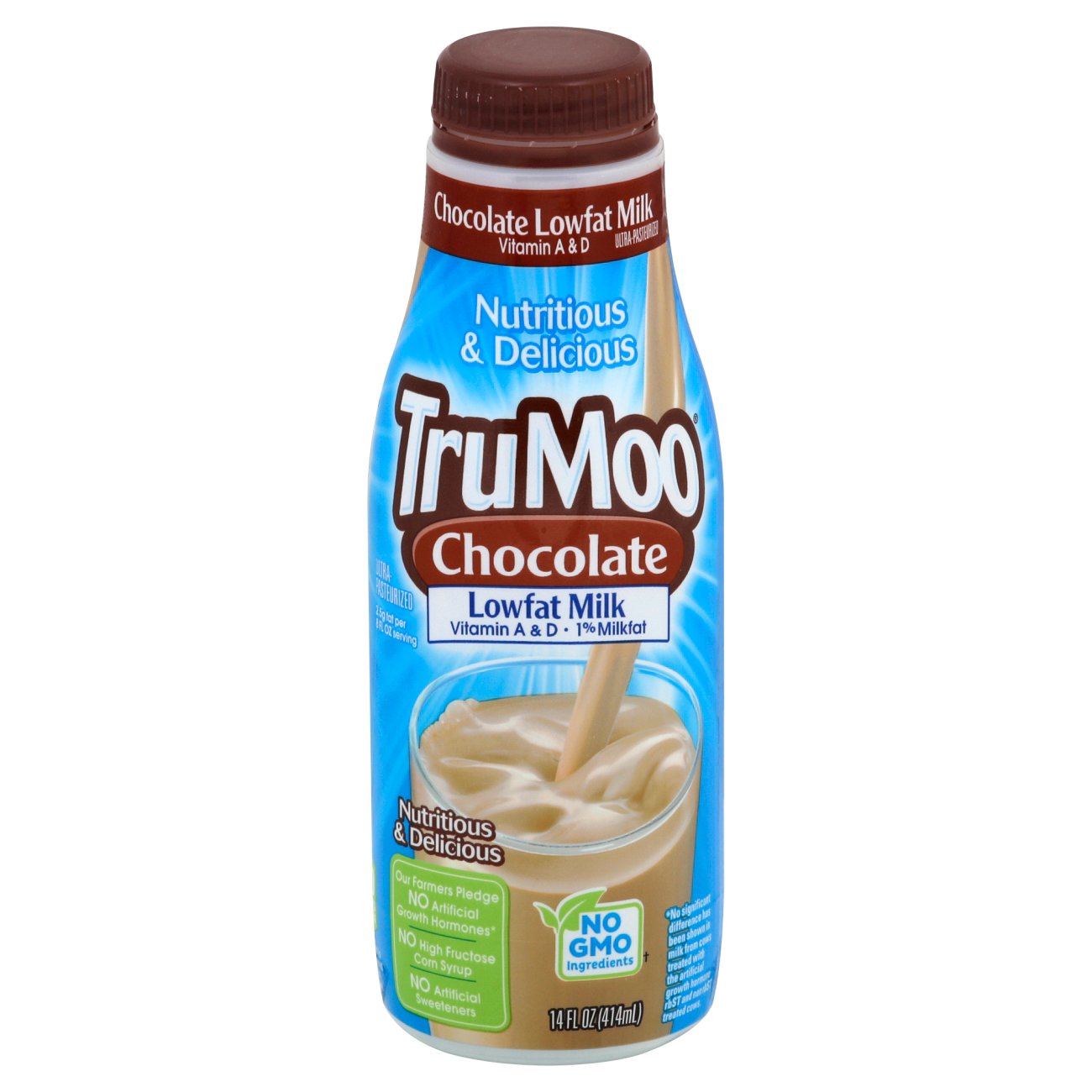 TruMoo 1% Low-Fat Chocolate Milk, 8 Fl. Oz. - Walmart.com Nutrition facts ; Total Carbohydrate 24g, 8% ; Dietary Fiber0g, 0% ; Sugars22g ; Protein 8g, 16% ... Trumoo Chocolate Milk Carton Fat Free Calories, Carbs & Nutrition ... Nutritional Info ; Sodium. 180 mg ; Potassium. 280 mg ; Cholesterol. 5 mg ; Vitamin A. 15 % ; Vitamin C · 0 %.