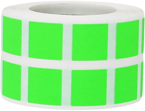 Fluorescent Green Square Color Coding Labels for Organizing Inventory 0.50 Inch Square Dots 1,000 Total Adhesive Stickers On A Roll