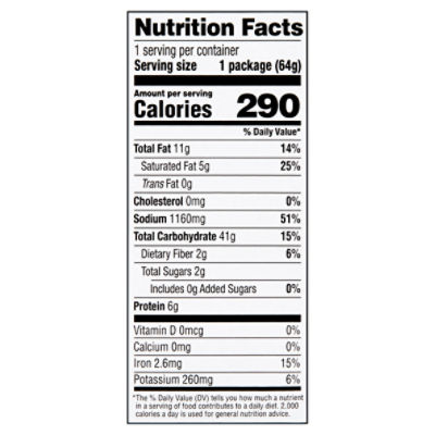 Maruchan Beef Flavor Ramen Noodle Soup - H-E-B Nutrition and ingredients Nutrition Facts with seasoning 2 servings per container Serving Size 0.50 block Amount Per Serving Calories 190 % Daily Value * Total Fat 7g 11% Saturated Fat 3.5g 18% Trans Fat 0g Cholesterol 0mg 0% Sodium 790mg 33% Total Carbohydrate 26g 9% Dietary Fiber <1g 3% Sugars 1g Protein 4g Vitamin A 0 Calcium 0 Vitamin C 0 Iron