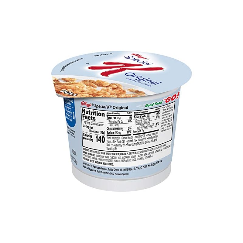 Kellogg's® Special K® Original Cereal - SmartLabel™ Special K™ Kellogg's® Special K® Original Cereal. 18 oz. 00038000016219. Nutrition . Ingredients . Allergens . Features & Benefits . ... *The % Daily Value (DV) tells you how much a nutrient in a serving of food contributes to a daily diet. 2,000 calories a day is used for general nutrition advice. Amazon.com: Special K: Grocery & Gourmet Food Special K Protein Bar, Chocolate Peanut Butter, 1.59-Ounce Packages (Pack of 16) 16 Count (Pack of 1) 36 Special K Chocolatey Delight Cereal, 13.4-Ounce Boxes (Pack of 4) 13.4 Ounce (Pack of 4) 100 Special K Cereal, Vanilla Almond, 14-Ounce Boxes (Pack of 4) 24 $4700 ($0.84/Ounce) Get it as soon as Thu, Apr 28 FREE Shipping