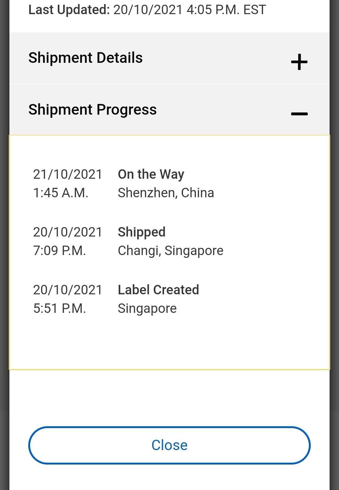 UPS Label created several days ago,but has not shipped yet I got an email from DJI that my order (mini 3 pro) was shipping soon,but to this date,and one week later,item has not shipped yet. UPS Label Created (Meaning + What To Do If It's Stuck) What Does 'Label Created' Mean On UPS? ... If UPS tracking shows 'label created', this means that the shipper has created a shipping label with UPS, and the label ...