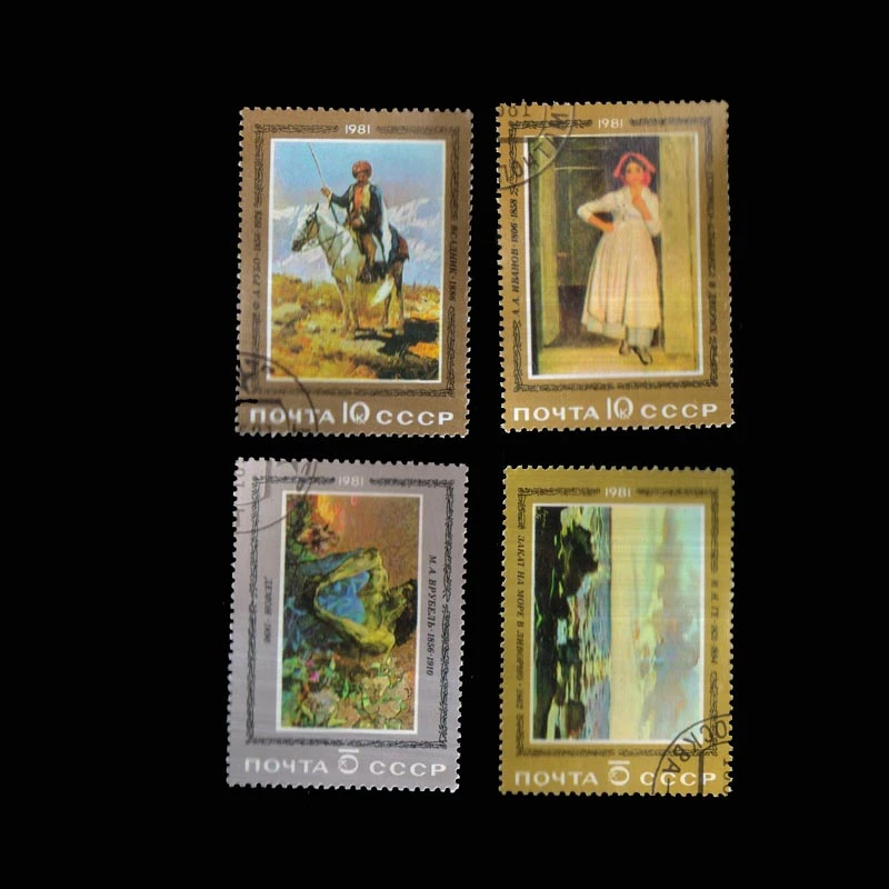 4 pcs/set 1981 CCCP Rusia Lukisan Tidak Terpakai Pos Perangko ...