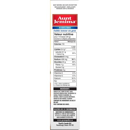 Aunt Jemima Pancake Mix Nutrition Label - This Nutrition In this article we'll discuss aunt jemima pancake mix nutrition label. Understanding Nutrition in Relation to Depression Treatment The Impact of Nutrition on Cognitive Function Simple Nutrition Strategies for Improving Moods How Good Nutrition Can Enhance Mental Well-Being Calories in Aunt Jemima Buttermilk Pancake & Waffle Mix and Nutrition Facts There are 110 calories in 1/4 cup (34 g) of Aunt Jemima Buttermilk Pancake & Waffle Mix. Calorie breakdown: 4% fat , 82% carbs, 14% protein. Related Waffles from Aunt Jemima: