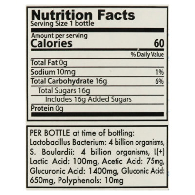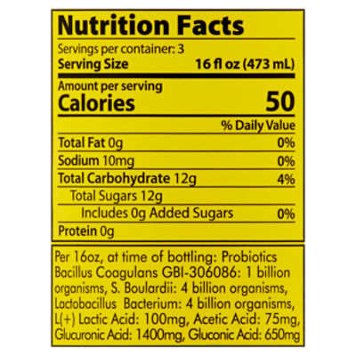 Gts kombucha nutrition. Calories in GT's Organic Raw Gingerade Kombucha and Nutrition Facts There are 25 calories in 1/2 bottle (8 oz) of GT's Organic Raw Gingerade Kombucha. Get full nutrition facts for other GT's products and all your other favorite brands. ... of GT's Organic Raw Gingerade Kombucha. Calorie breakdown: 0% fat, 100% carbs, 0% protein. Related Nutrition Drinks from GT's: Synergy Raw Kombucha Lemon Berry: Organic Raw ... Nutrition Facts for GT's Rose Classic Kombucha - MyFoodDiary Alcohol 1.9g. 0% Vitamin D 0mcg. 0% Calcium 0mg. 0% Iron 0mg. 0% Potassium 0mg. 0% Vitamin A 0mcg. 0% Vitamin C 0mg. *. The % Daily Value (DV) tells you how much a nutrient in a serving of food contributes to a daily diet. 2,000 calories a day is used for general nutrition advice. Kombucha Nutrition Facts and Health Benefits - Verywell Fit One 8-ounce (240mL) serving of kombucha provides 29 calories, 0g of protein, 8g of carbohydrates, and 0g of fat. Kombucha is an excellent source of B-complex vitamins, including thiamin and niacin. This nutrition information is provided by the USDA. 1 Calories: 29 Fat: 0g Sodium: 10mg Carbohydrates: 8g Fiber: 0g Sugars: 8g Protein: 0g Carbs Calories in GT's Organic Raw Kombucha and Nutrition Facts - FatSecret Food database and calorie counter GT's Organic Raw Kombucha Nutrition Facts Serving Size 1/2 bottle (8 oz) Amount Per Serving Calories 30 % Daily Values* Total Fat 0.00g 0% Saturated Fat 0.000g 0% Trans Fat 0.000g Polyunsaturated Fat 0.000g Monounsaturated Fat 0.000g Cholesterol 0mg 0% Sodium 10mg 0% Total Carbohydrate 7.00g 3% Dietary Fiber 0.0g