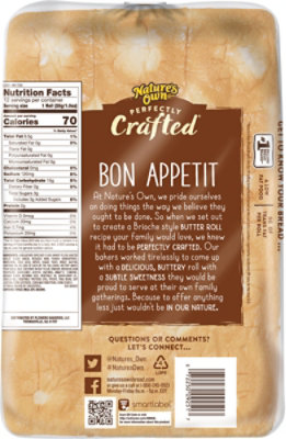 Butter Bread, 20 oz at Whole Foods Market Find Nature's Own Butter Bread, 20 oz at Whole Foods Market. Get nutrition, ingredient, allergen, pricing and weekly sale information! ... You should not rely solely on the information presented here and you should always read labels, warnings, and directions before using or consuming a product. The information provided on this website should ...